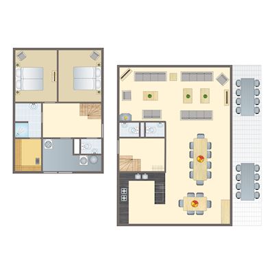 - Badezimmer mit Whirlpool und WC auf der ersten Etage