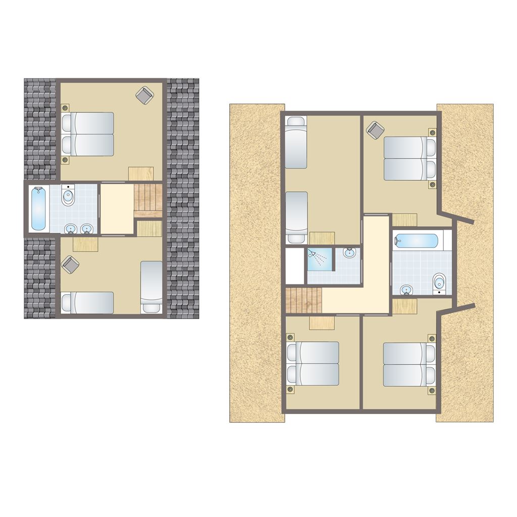 - Sechs Schlafzimmer mit jeweils zwei Auping Boxspring-Einzelbetten auf der ersten Etage