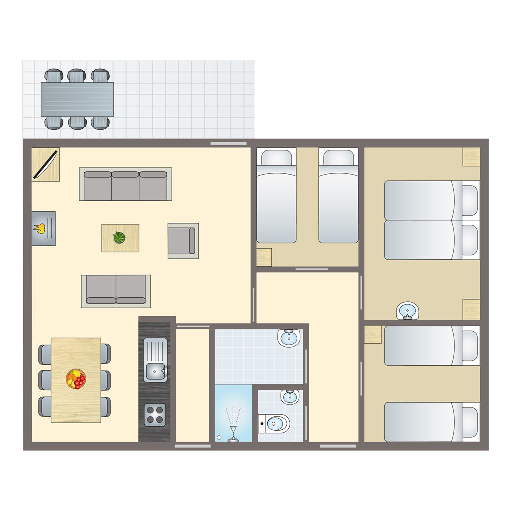 - Zwei Schlafzimmer mit jeweils zwei Boxspring-Einzelbetten