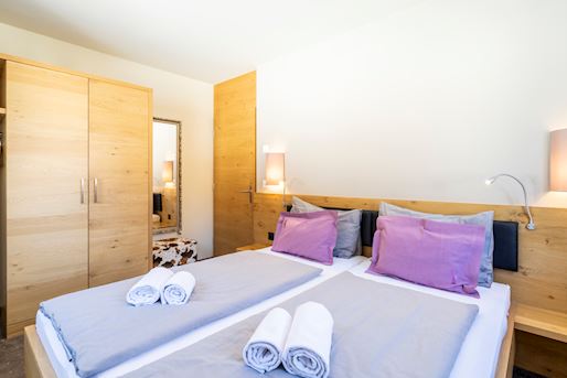 - Schlafzimmer mit einem Doppelbett und 2-Personen Softtopper
