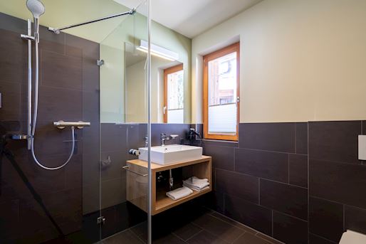 - Badezimmer mit ebenerdiger Dusche und WC