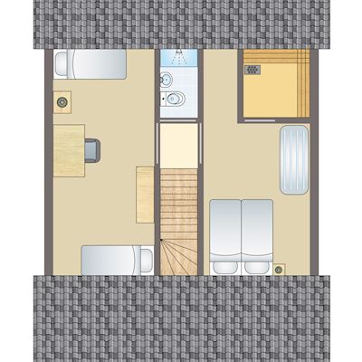 - Badezimmer mit Dusche und WC auf der ersten Etage
