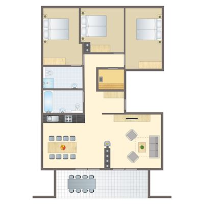 - Badezimmer mit Badewanne und/oder Dusche und WC