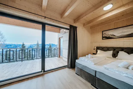 Ruhe und Freiraum in unseren luxuriösen Ferienwohnungen in Sonnleitn. Besonderes Highlight ist der großzügige Balkon mit angegrenzender finnischer Sauna, die mit einem Panoramafenster überrascht. Lass den Blick über das verschneite Tal schweifen, während Du die Wärme der Sauna genießt.