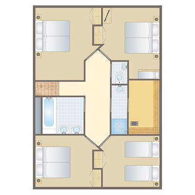 - Drei Schlafzimmer mit jeweils zwei Auping Boxspring-Einzelbetten auf der ersten Etage