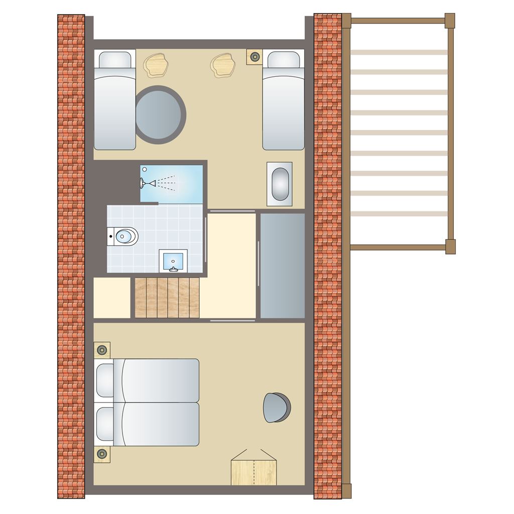 - Kinderspiel-/schlafzimmer mit zwei Juniorbetten auf der ersten Etage