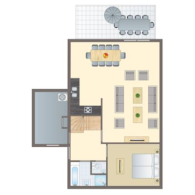 - Badezimmer mit Sonnendusche und WC auf der ersten Etage