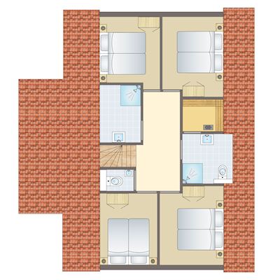 - Vier Schlafzimmer mit jeweils zwei Boxspring-Einzelbetten auf der ersten Etage