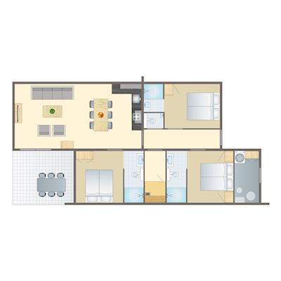 - Zwei Badezimmer (vom Schlafzimmer begehbar) mit jeweils Regendusche und WC