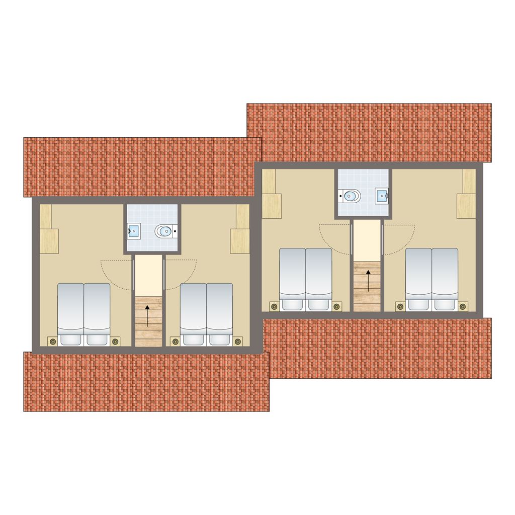 - Vier Schlafzimmer mit jeweils zwei Einzelbetten auf der ersten Etage