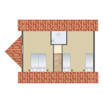 - Zwei Schlafzimmer mit jeweils zwei Boxspring-Einzelbetten auf der ersten Etage