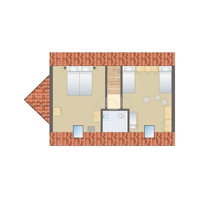 - Kinderspiel-/schlafzimmer mit zwei Juniorbetten auf der ersten Etage