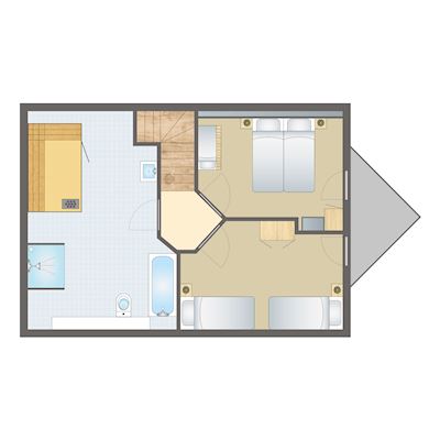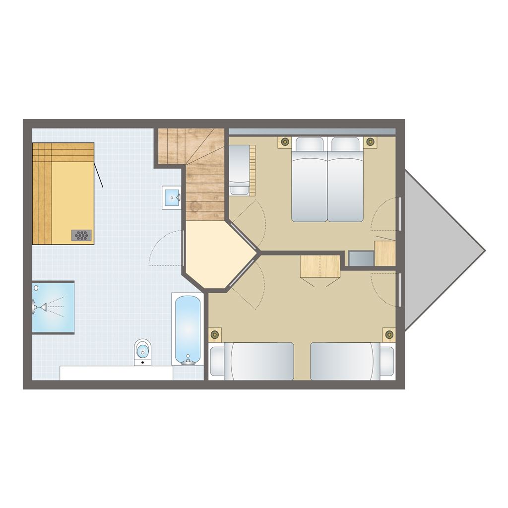 - Zwei Schlafzimmer mit jeweils zwei Boxspring-Einzelbetten auf der ersten Etage