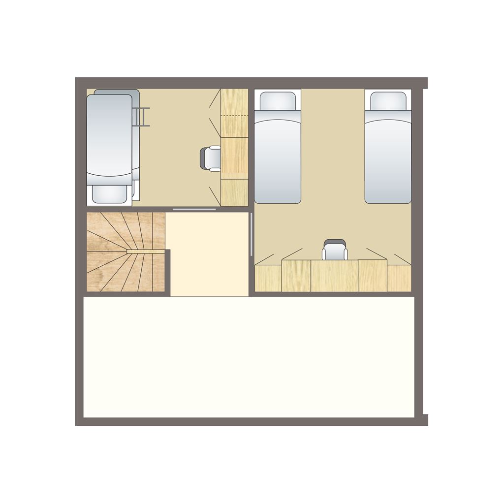 - Erste Etage im Maisonettestil mit einem Doppelbett und ein Schlafzimmer mit einem Doppelbett (nur im Ferienhaus 665)
