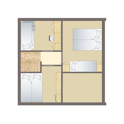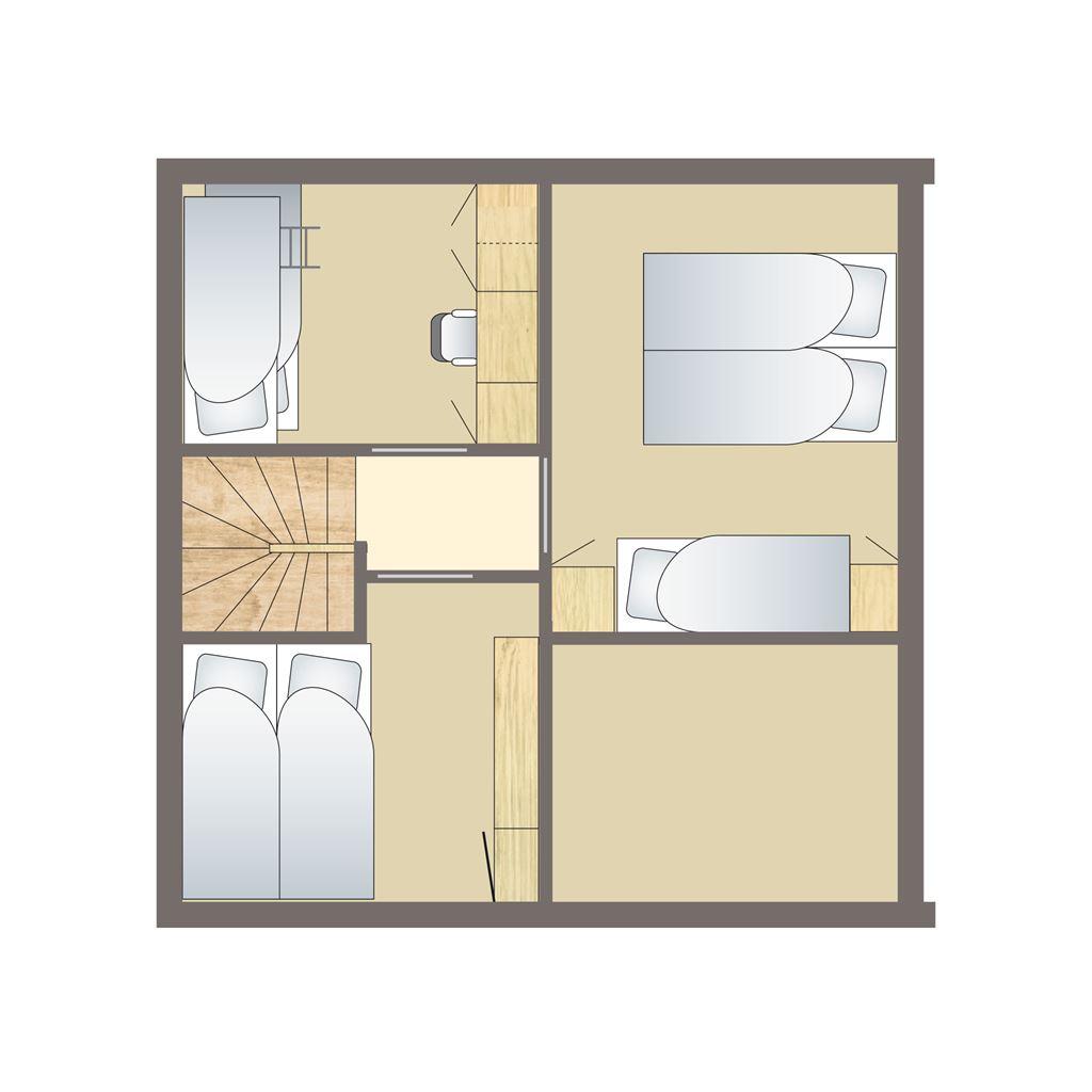 - Schlafzimmer mit einem Doppelbett oder zwei Einzelbetten und ein Hochbett