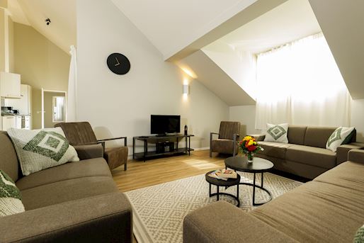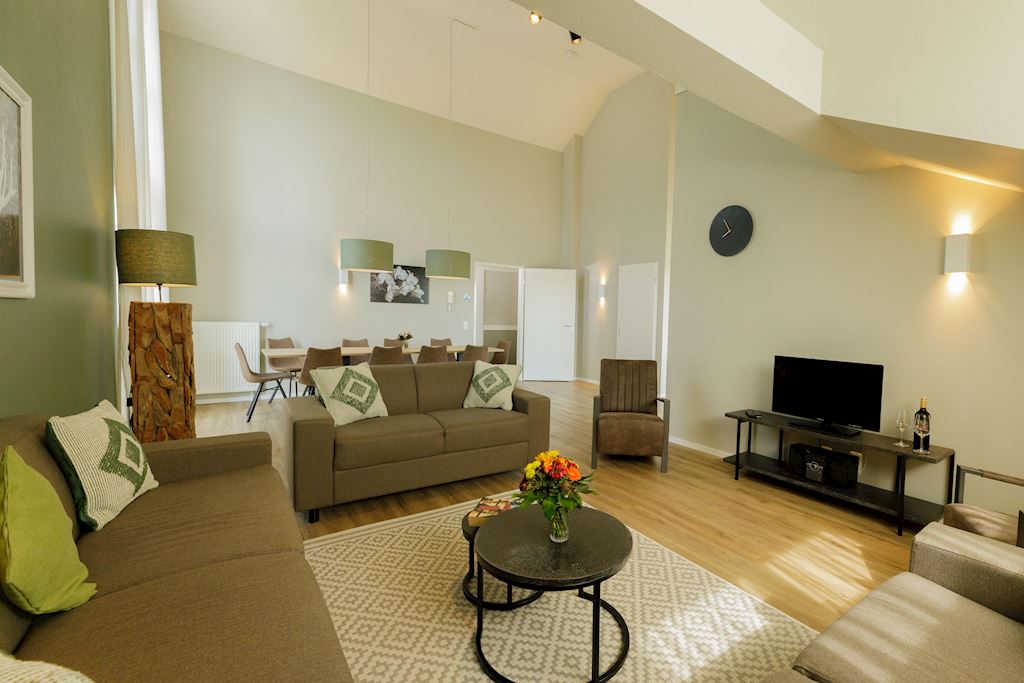 - Zwei Schlafzimmer mit jeweils zwei Boxspring-Einzelbetten und Flatscreen-TV