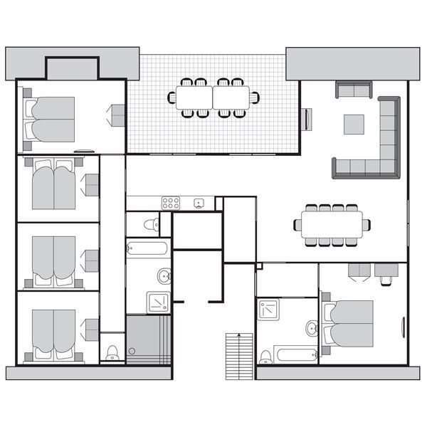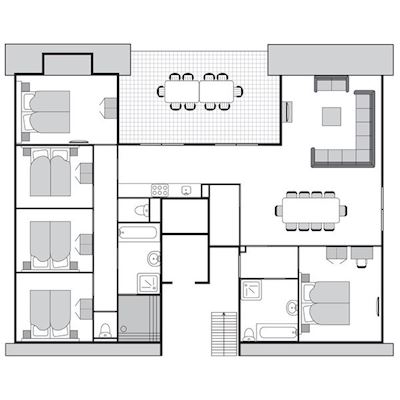 - Drei Schlafzimmer mit jeweils zwei Boxspring-Einzelbetten