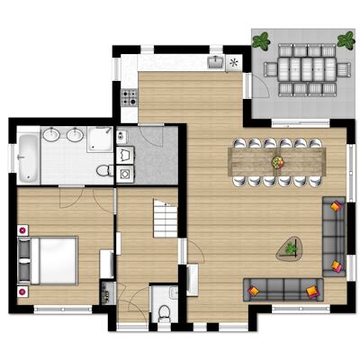 - Als Sonderwunsch buchbar: umzäunter Garten