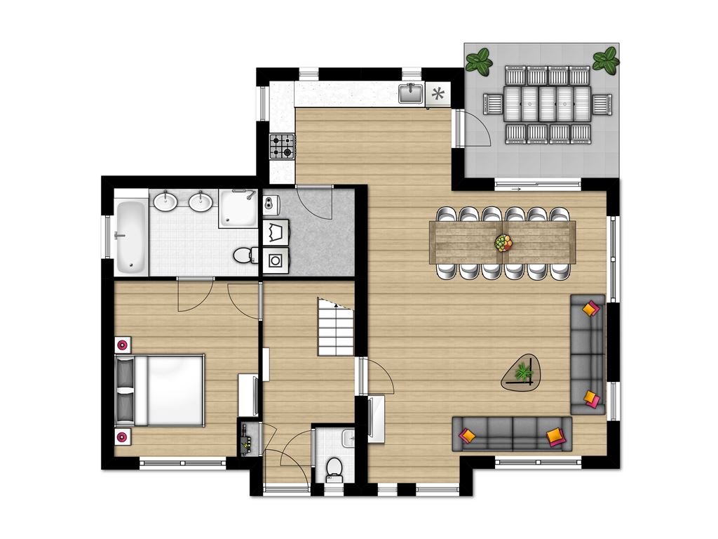 Abweichungen bei der Einteilung, Beschreibung und Abbildung des Grundrisses, der Ausstattungen und der Bilder sind möglich.