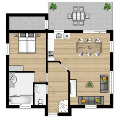 - Als Sonderwunsch buchbar: überdachte Terrasse