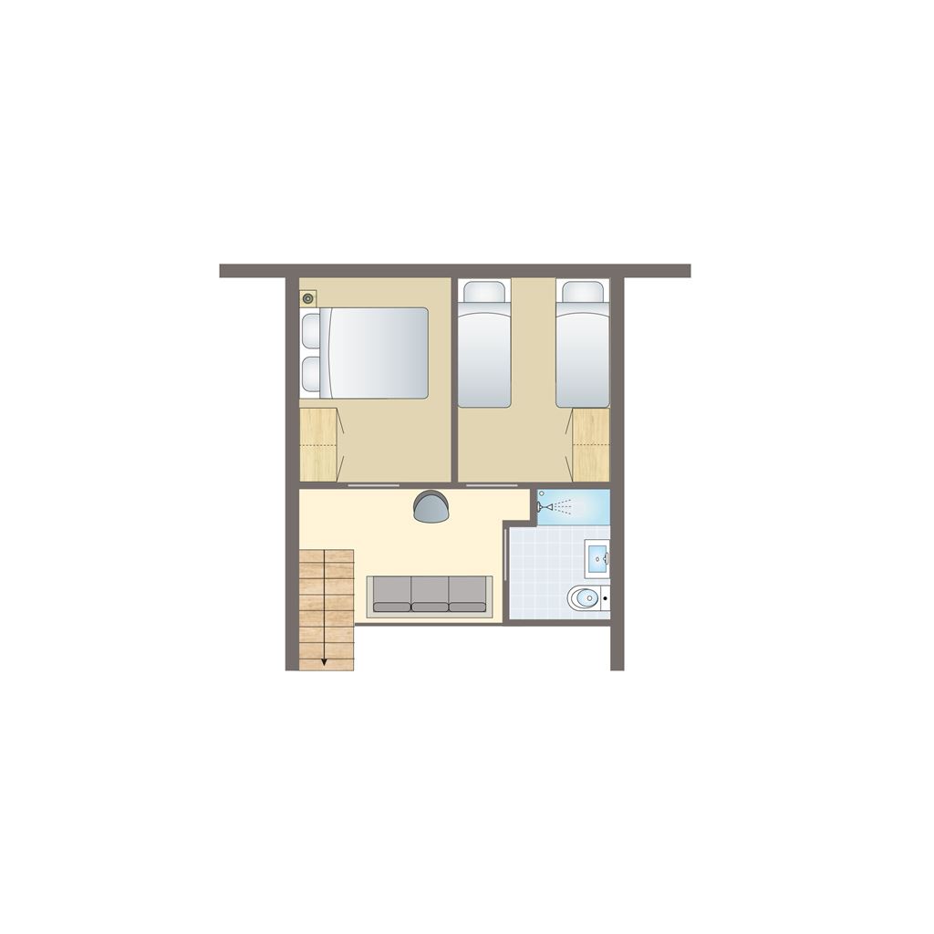 - Zwei Schlafzimmer mit jeweils einem Doppelbett oder zwei Einzelbetten