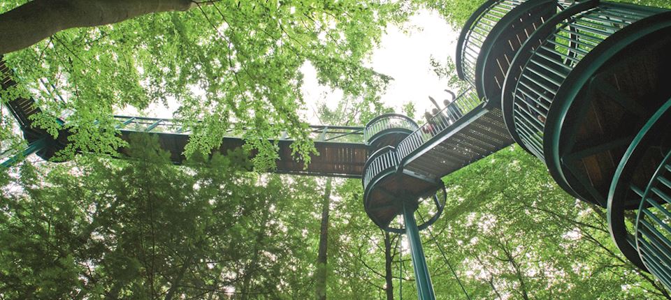 Auf zu einem abenteuerlichen Spaziergang durch die Baumkronen. Vom Baumkronenpfad aus starten mehrere abenteuerliche Wanderrouten und Schnitzeljagden. Kinder werden sich im Spielwald keine Sekunde langweilen.