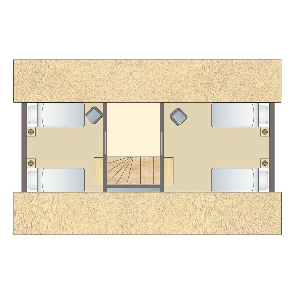 - Zwei Schlafzimmer mit jeweils zwei Boxspring-Einzelbetten auf der ersten Etage