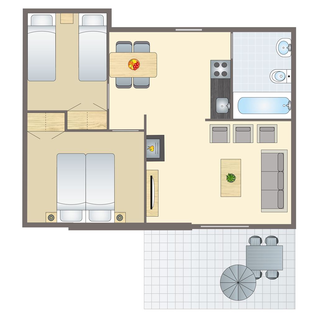 - Zwei Schlafzimmer mit jeweils zwei Boxspring-Einzelbetten