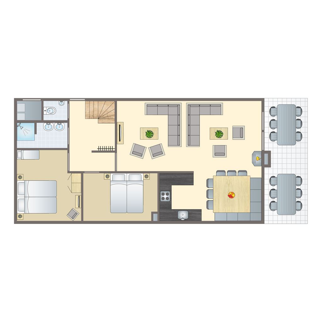 - Badezimmer mit Dusche, Doppelwaschbecken und WC auf der ersten Etage