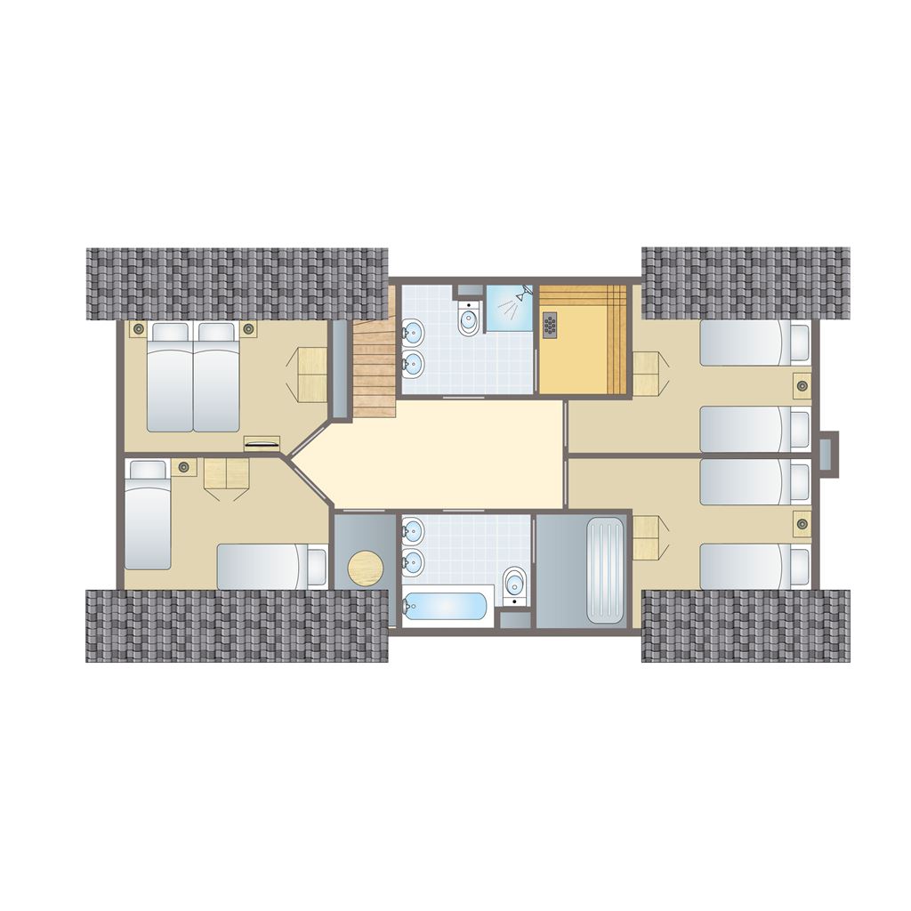 - Drei Schlafzimmer mit jeweils zwei Auping Boxspring-Einzelbetten auf der ersten Etage