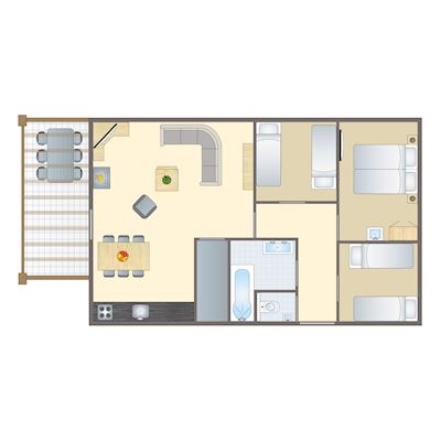- Zwei Schlafzimmer mit jeweils zwei Boxspring-Einzelbetten