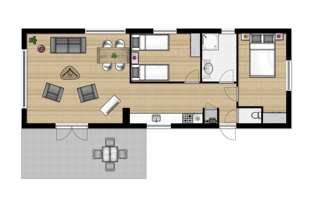 - Zwei Schlafzimmer mit jeweils zwei Einzelbetten
