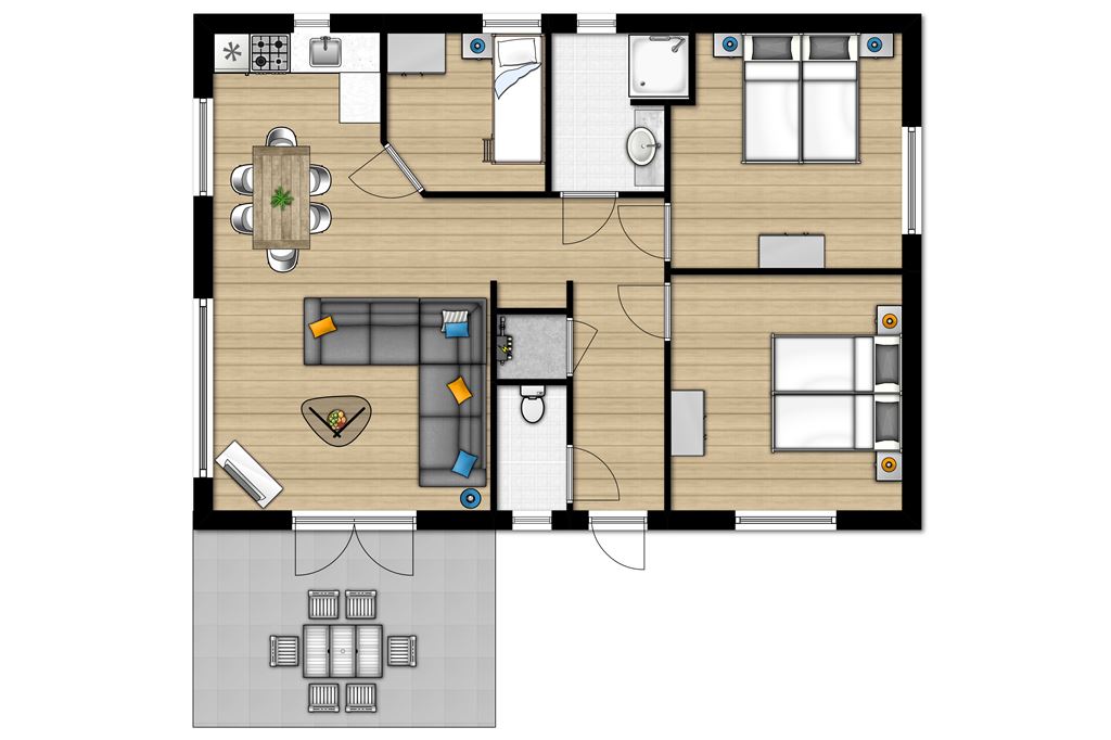 - Zwei Schlafzimmer mit jeweils zwei Einzelbetten