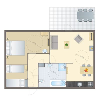 - Wendekreis von 150 cm mit Ausnahme der Bungalows 314 und 315 (Wendekreis gibt es 100 cm)