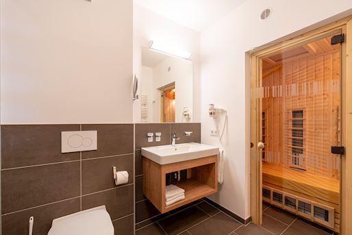 - Zustellbetten (bei Vollbelegung kann jeweils ein Bett im Wohnzimmer und ein Bett im Schlafzimmer aufgestellt werden)