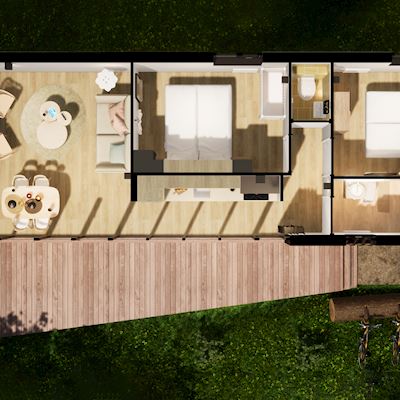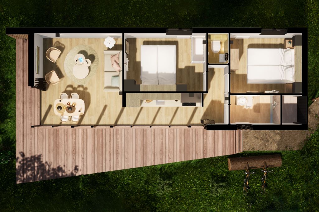 - Zwei Schlafzimmer mit jeweils einem Boxspring-Doppelbett