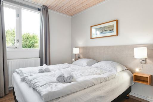 - Schlafzimmer mit einem Boxspring-Doppelbett, 2-Personen Softtopper und Waschbecken
