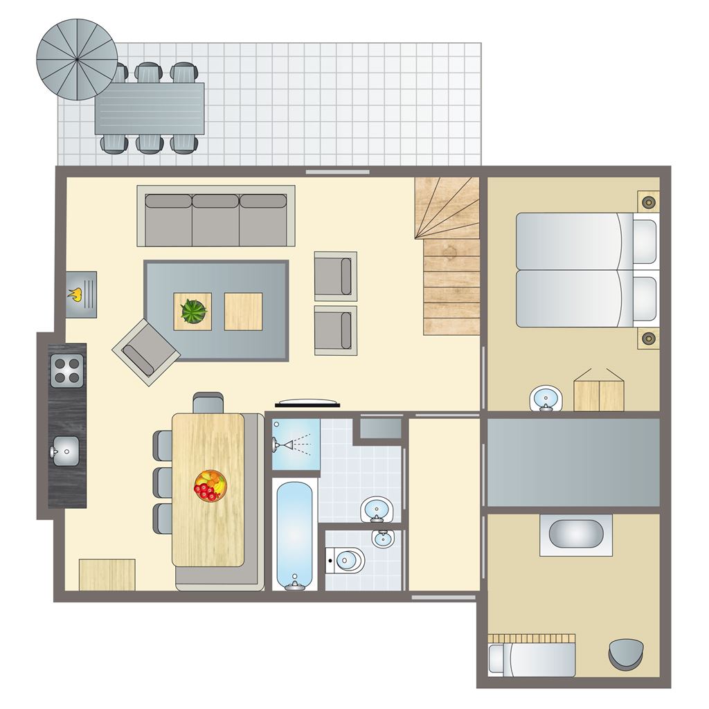 Abweichungen bei der Einteilung, Beschreibung und Abbildung des Grundrisses, der Ausstattungen und der Bilder sind möglich.