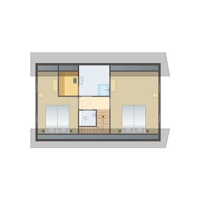 - Schlafzimmer mit zwei Einzelbetten auf der ersten Etage