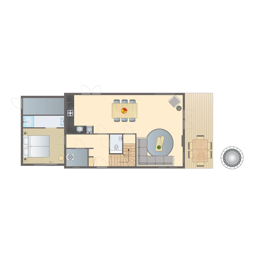 - Badezimmer (vom Schlafzimmer begehbar) mit ebenerdiger Dusche im Erdgeschoss