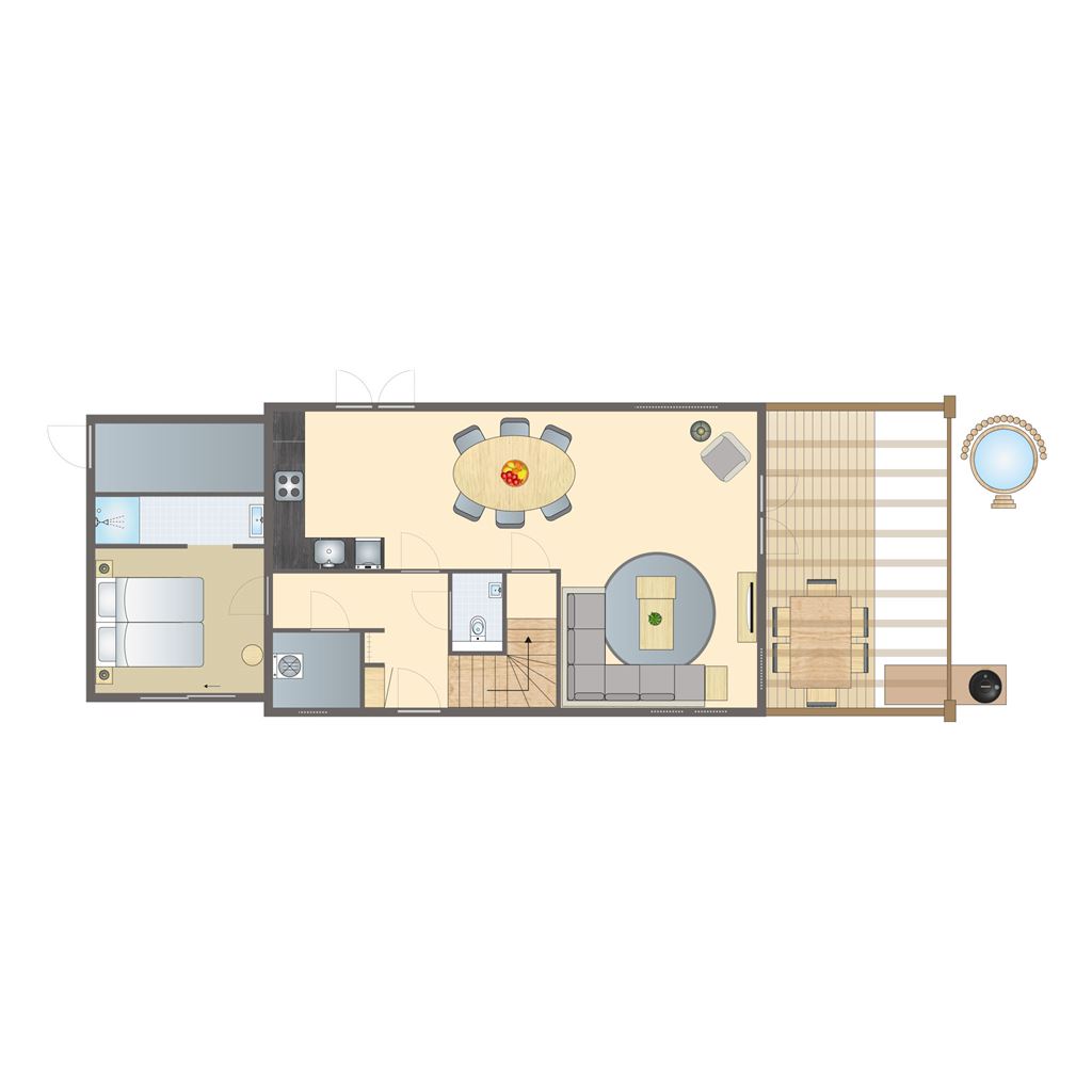 - Badezimmer (vom Schlafzimmer begehbar) mit ebenerdiger Dusche im Erdgeschoss