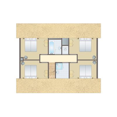 - Vier Schlafzimmer mit jeweils zwei Boxspring-Einzelbetten auf der ersten Etage