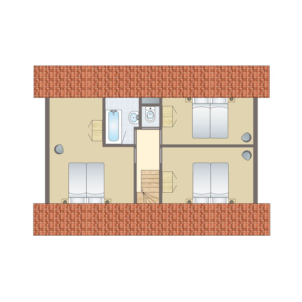 - Drei Schlafzimmer mit jeweils zwei Boxspring-Einzelbetten auf der ersten Etage
