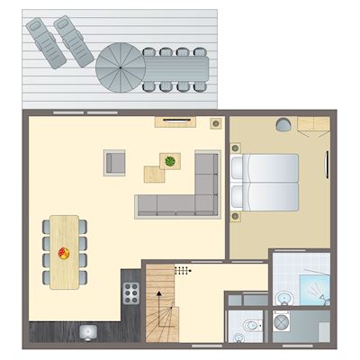 - Badezimmer mit Badewanne und WC auf der ersten Etage