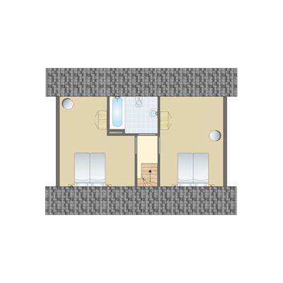 - Zwei Schlafzimmer mit jeweils zwei Boxspring-Einzelbetten auf der ersten Etage