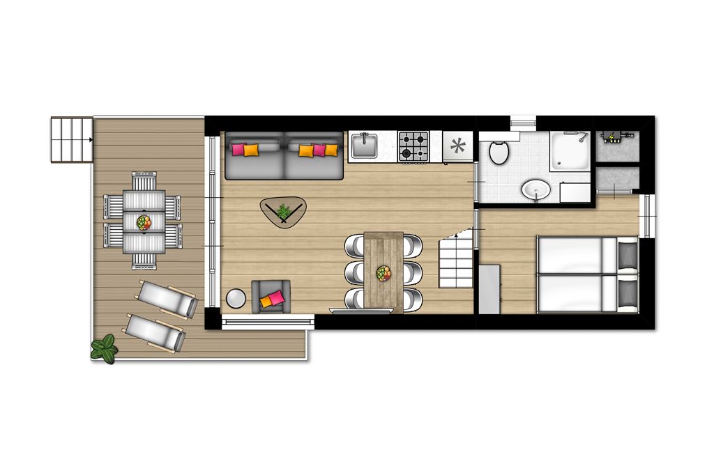 - Badezimmer mit Dusche und WC auf der ersten Etage