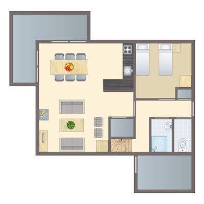 - Zwei Schlafzimmer mit jeweils zwei Boxspring-Einzelbetten auf der ersten Etage
