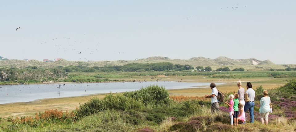 Mache mit dem Förster eine Wanderung durch das weitläufige Schorrengebiet De Schorren und beobachte Vögel wie den Löffler, die Eiderente und den Austernfischer. Oder begebe Dich auf eine Planwagenfahrt entlang der Heidefelder, nassen Dünentäler und ausgiebigen Sandflächen des Nationalparks Duinen van Texel.