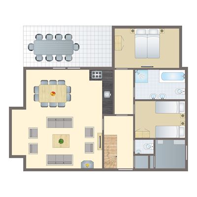 - Badezimmer mit Badewanne, Dusche und Doppelwaschbecken auf der ersten Etage