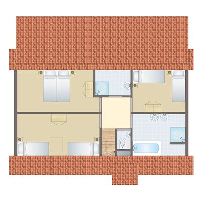 - Drei Schlafzimmer mit jeweils zwei Boxspring-Einzelbetten auf der ersten Etage